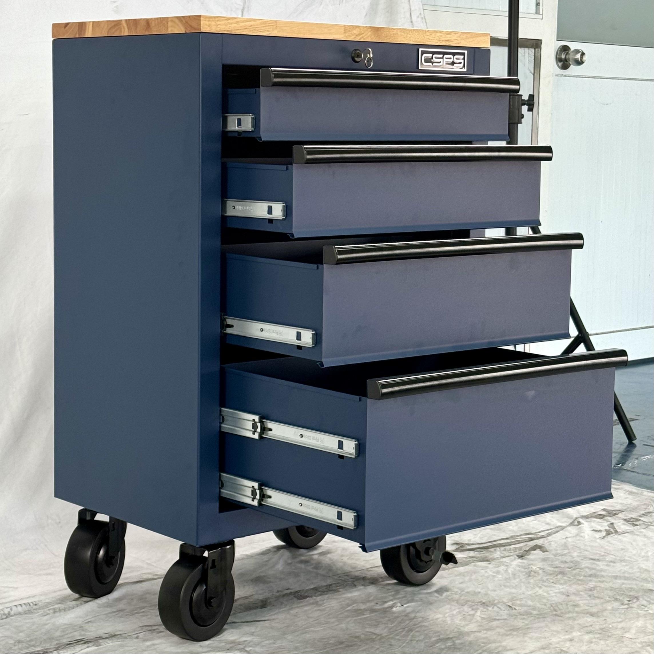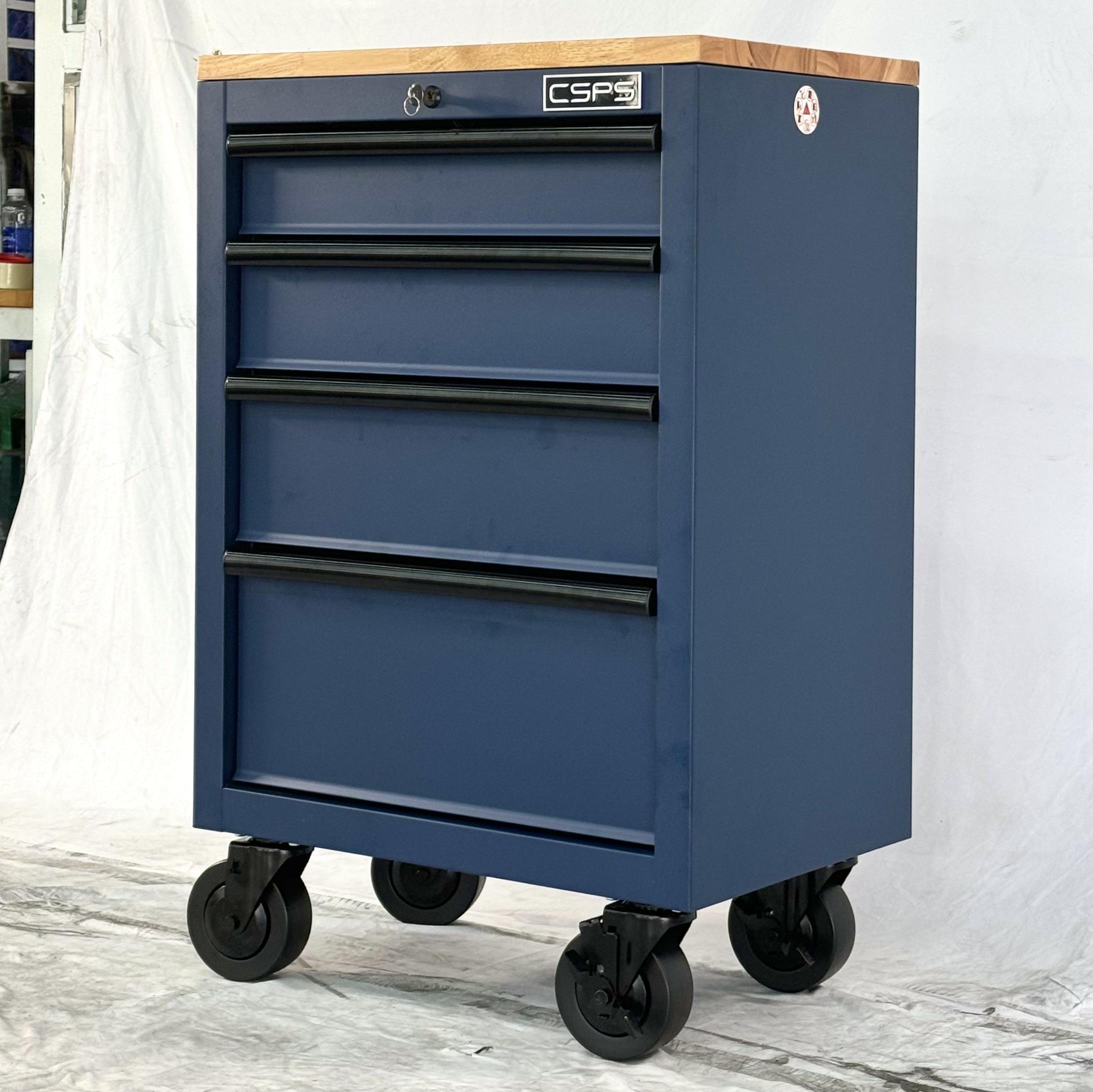 Tủ dụng cụ CSPS 61cm - 04 hộc kéo màu xanh dương kèm bánh xe và ván gỗ