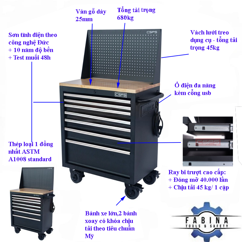 Tủ dụng cụ CSPS 76 cm kết hợp vách lưới – 07 hộc kéo là một thiết kế mới của CSPS dành riêng cho người thợ Việt Nam với các lợi ích nổi bậc: / CSPS tool cabinet 76 cm – 07 drawers is a new design of CSPS specialized for Vietnamese with outstanding benefits: