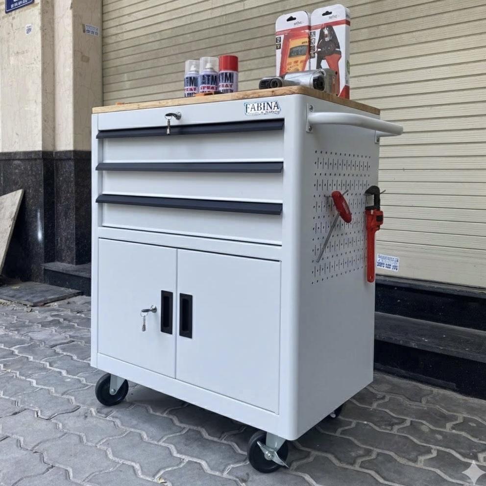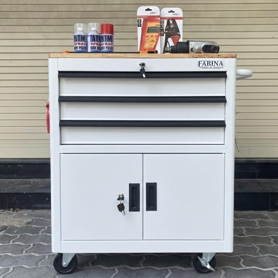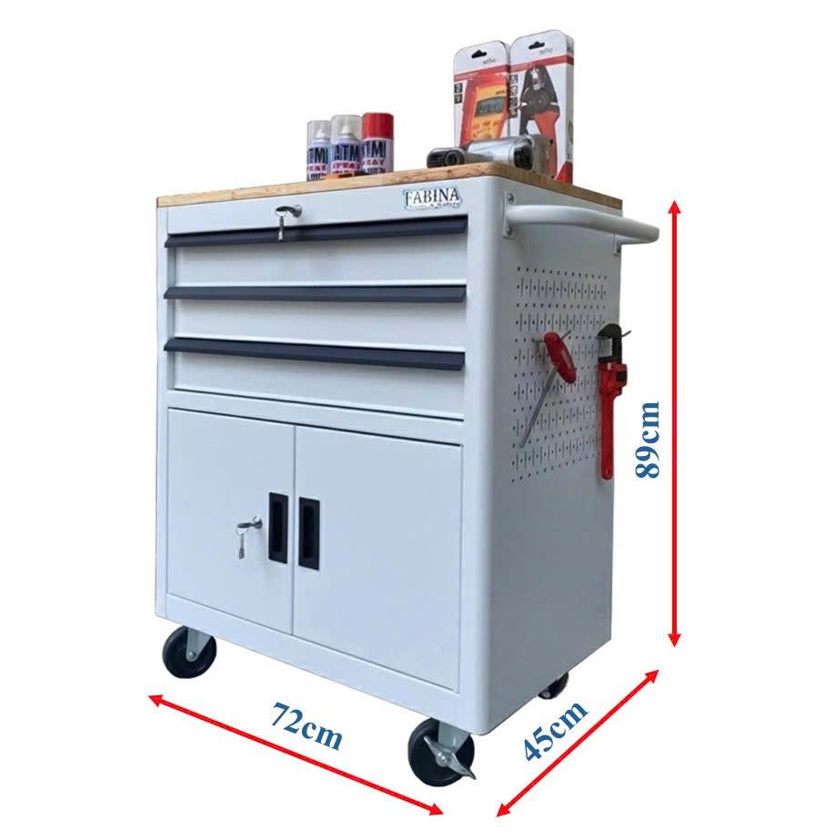 Tủ dụng cụ 3 hộc kéo 2 ngăn chứa màu trắng Fabina