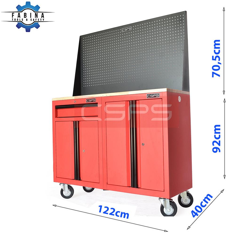 Bộ 2 Tủ dụng cụ CSPS 122cm màu đỏ mặt ván gỗ kèm vách lưới