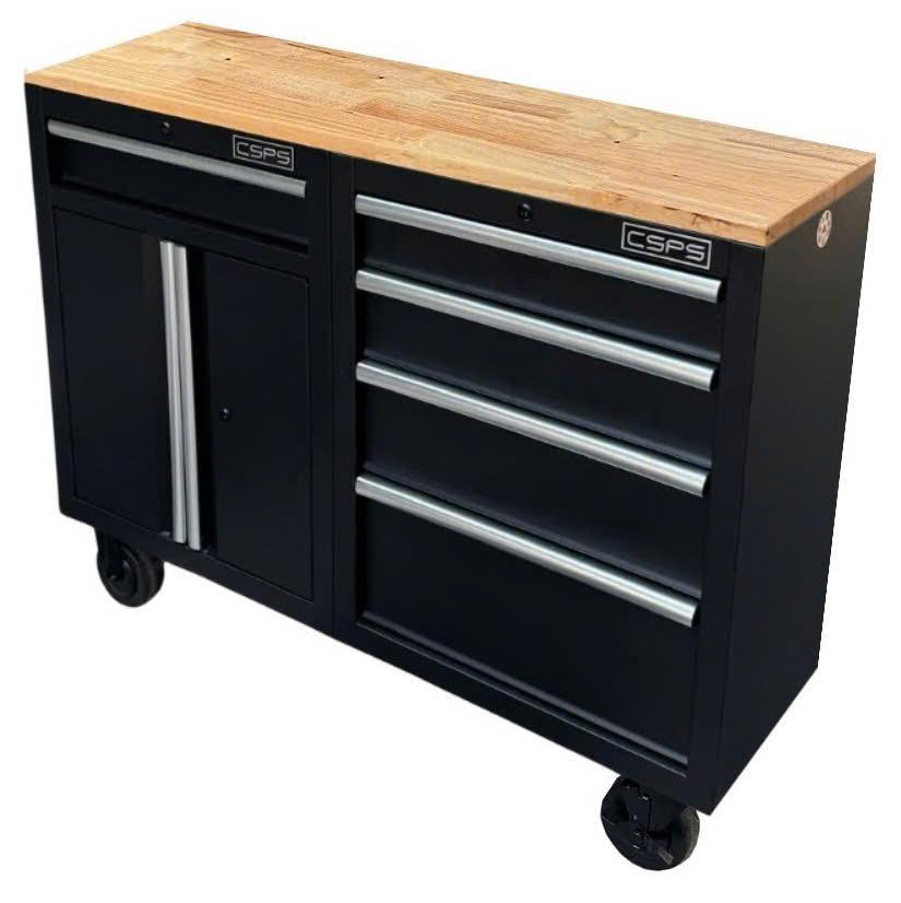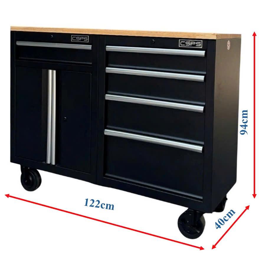 Tủ dụng cụ CSPS 122cm - 05 hộc kéo màu đen mặt ván gỗ (tay nắm trắng)