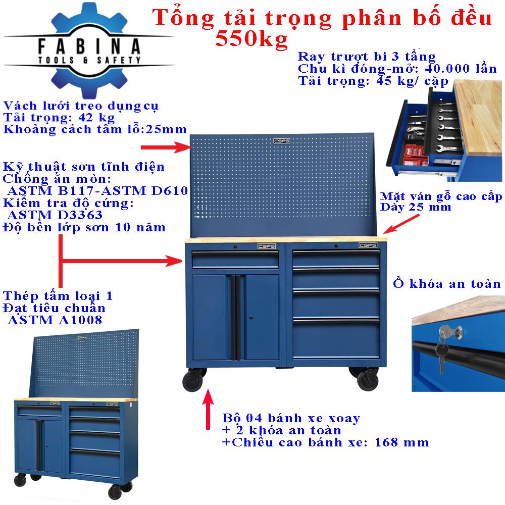 - Từ khóa: Tủ dụng cụ CSPS, Tủ đồ nghề CSPS, Tủ dụng cụ tiêu chuẩn Mỹ, Tủ CSPS