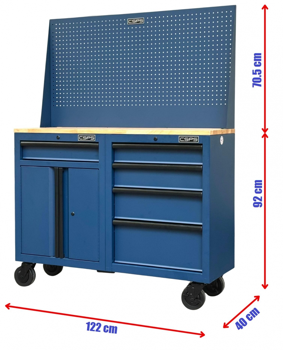 Tủ dụng cụ CSPS 122cm - 05 hộc kéo màu xanh dương kèm vách lưới