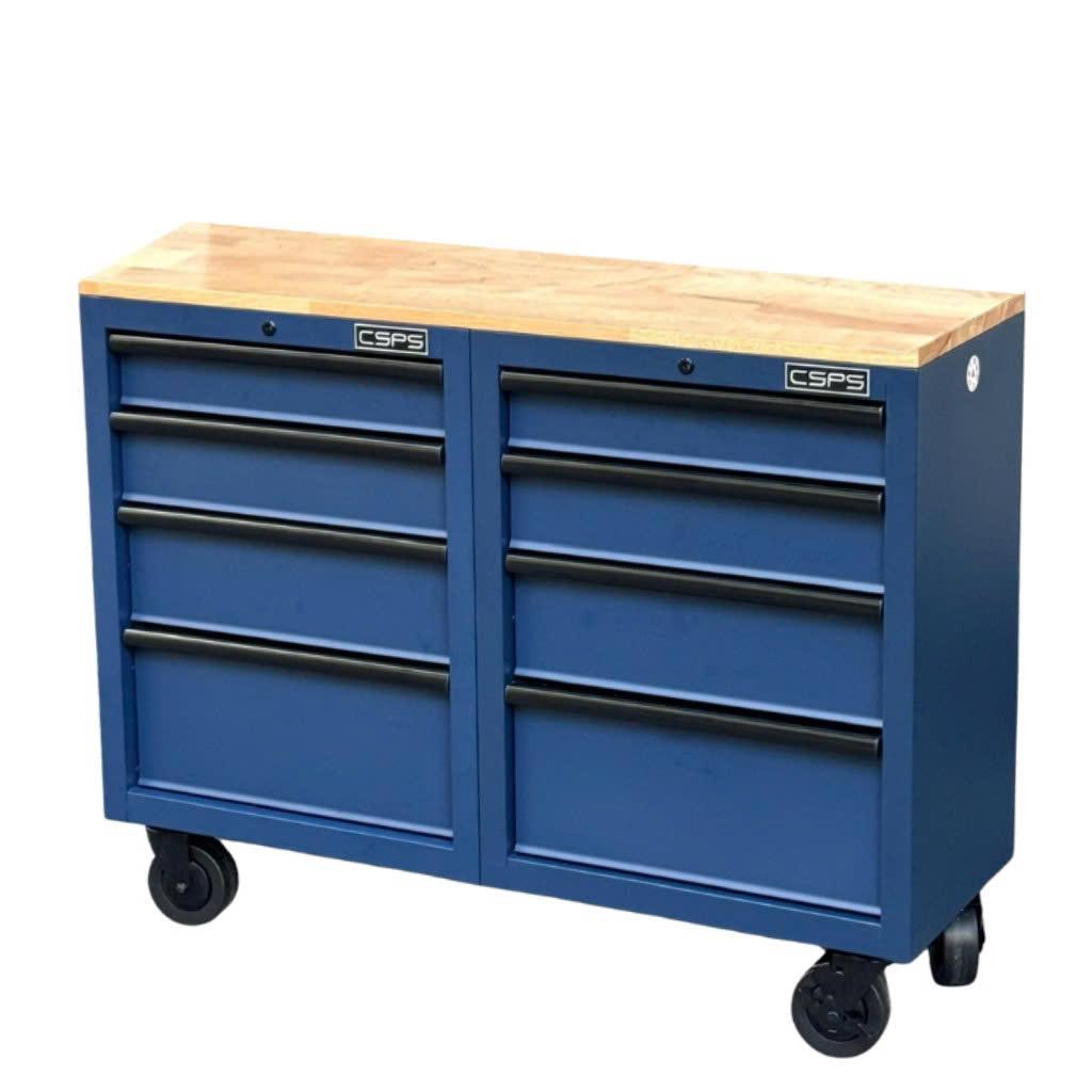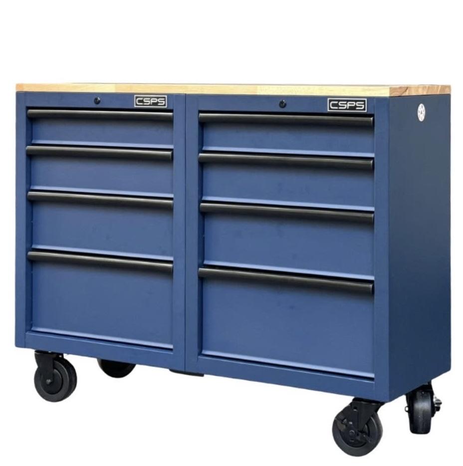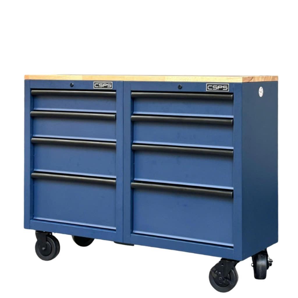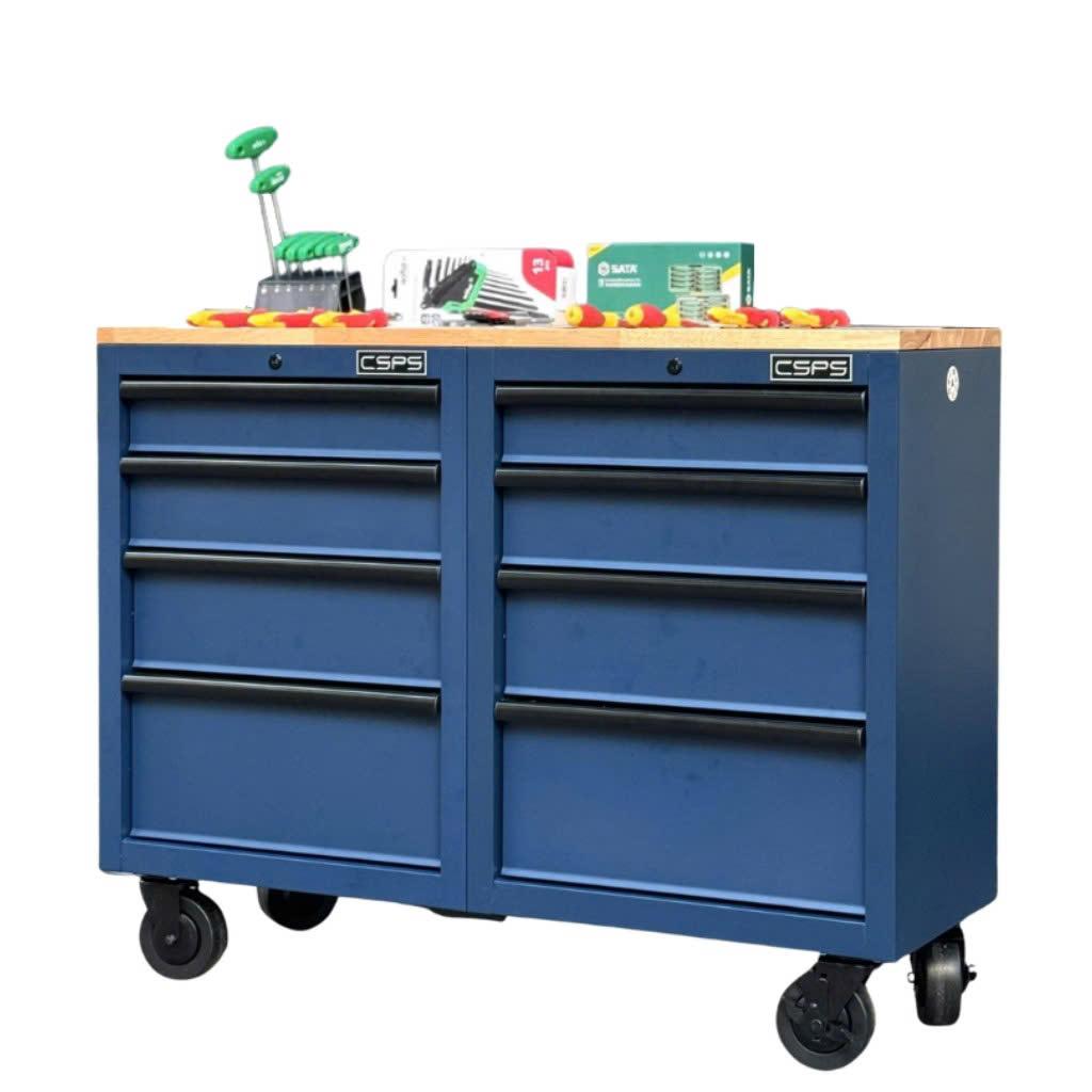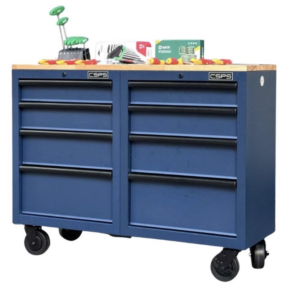 Tủ dụng cụ CSPS 122cm - 08 hộc kéo màu xanh dương mặt ván gỗ