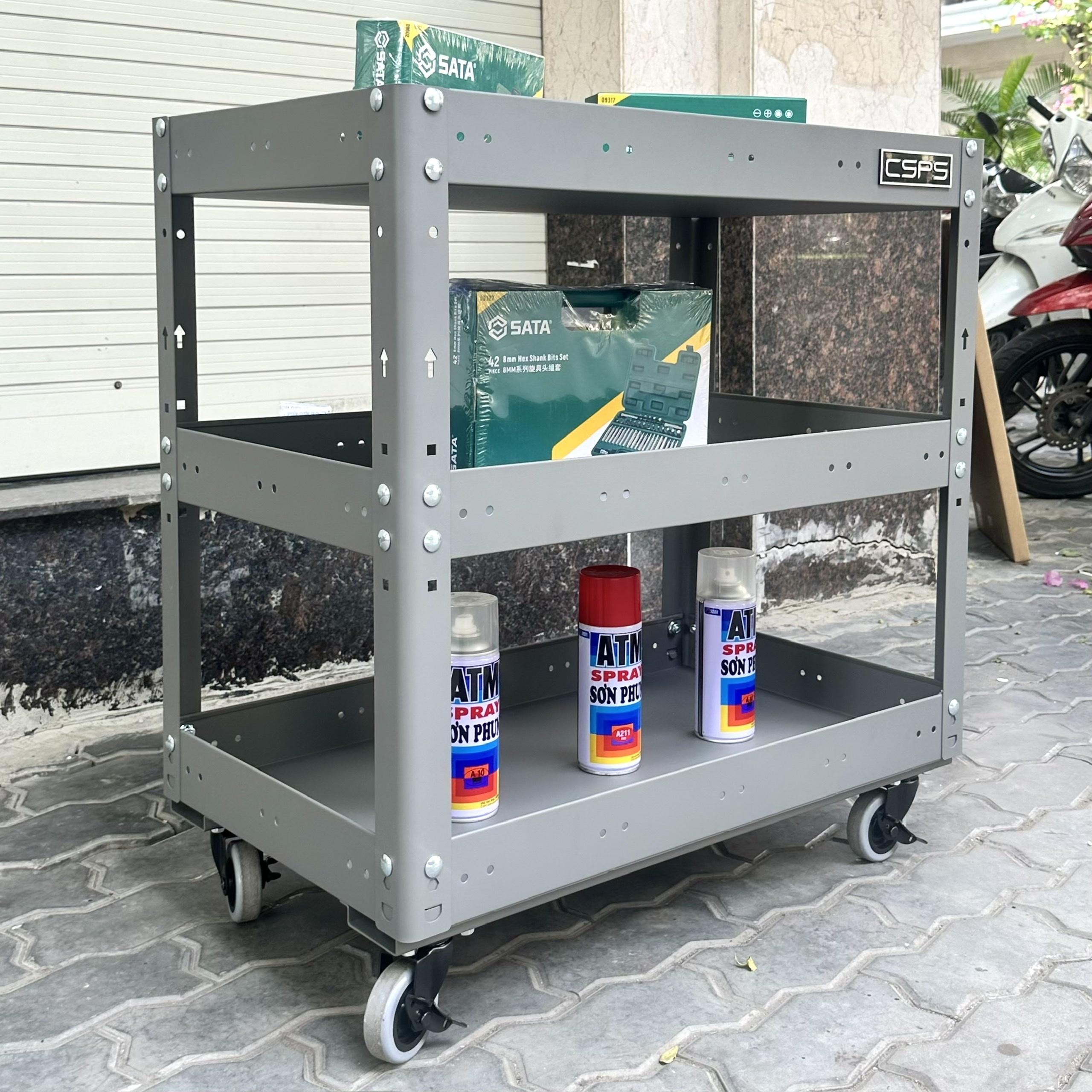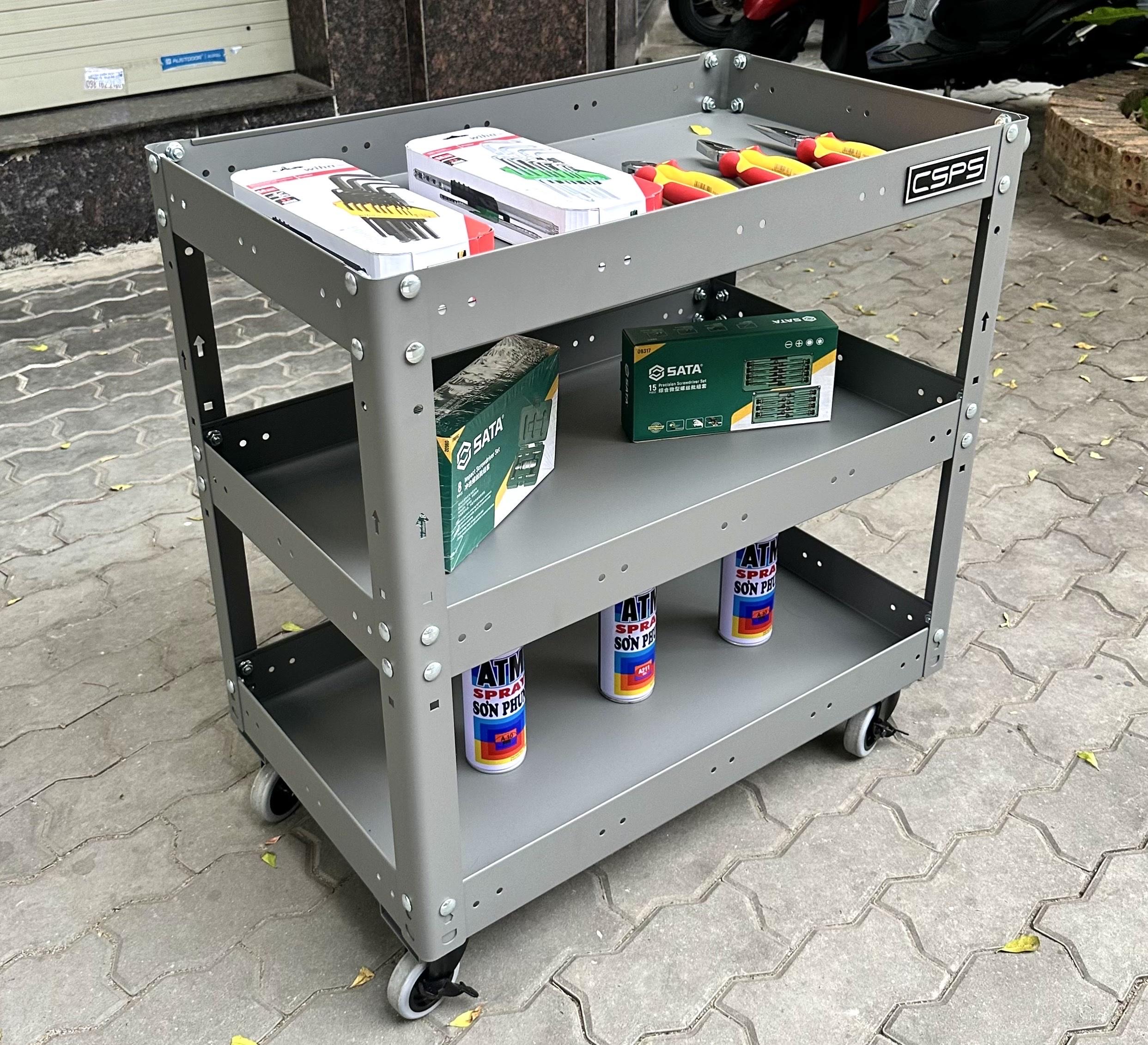 Xe đẩy 3 ngăn 71cm, Tiêu chuẩn Mỹ, sơn tĩnh điện, giúp bạn chứa dụng cụ và di chuyển dễ dàng trong quá trình làm việc, là một trang bị cần thiết cho nhà máy, garage, cửa hàng hay văn phòng làm việc