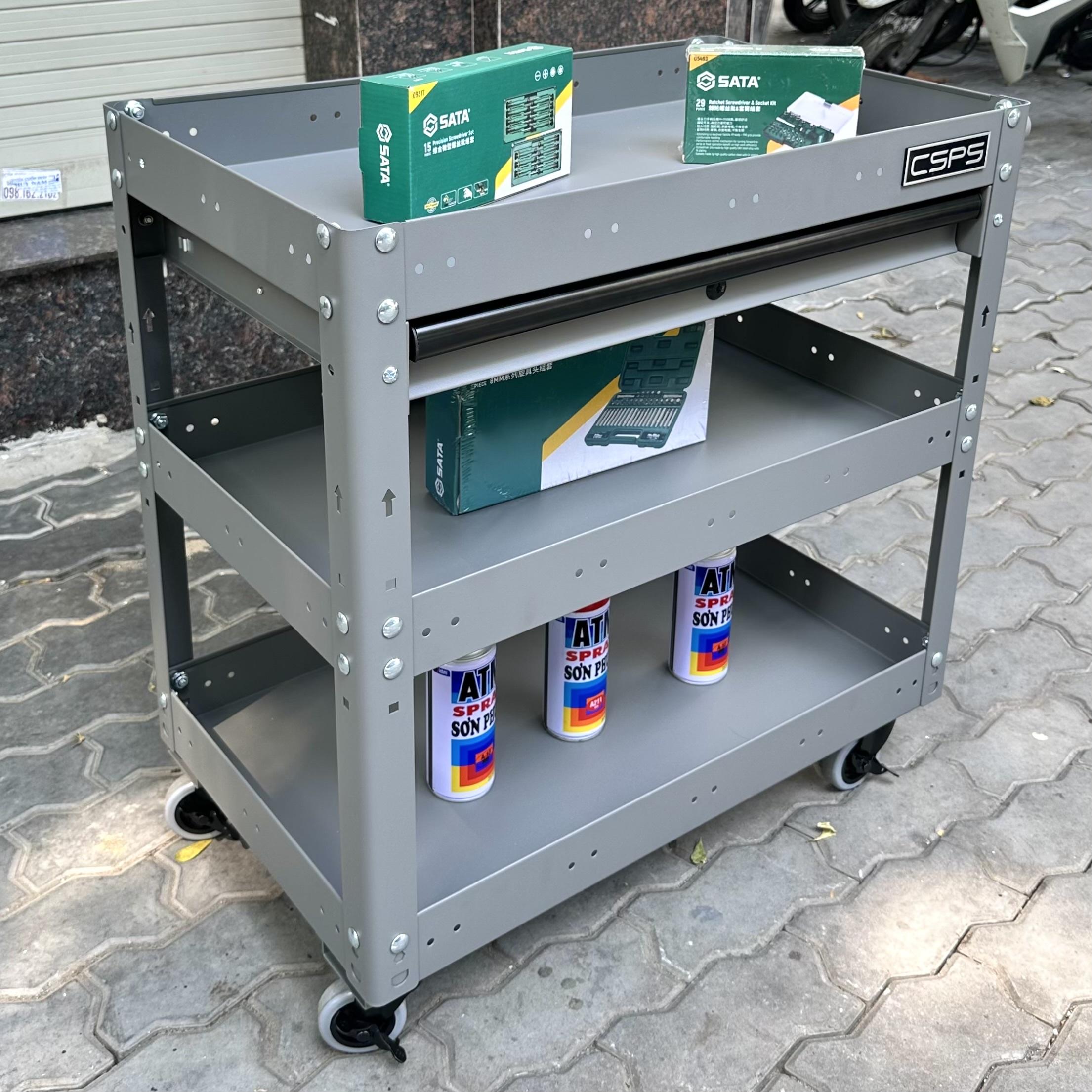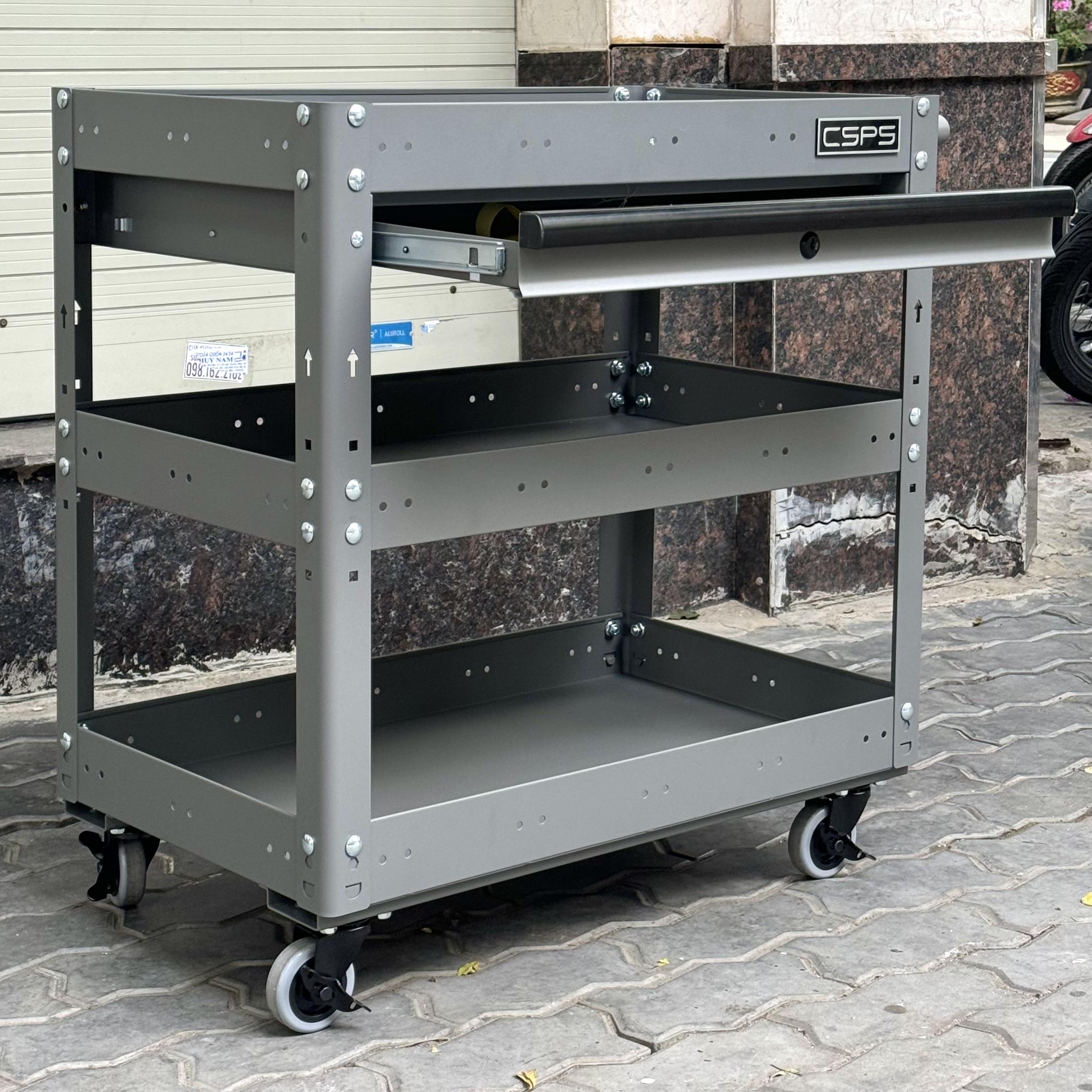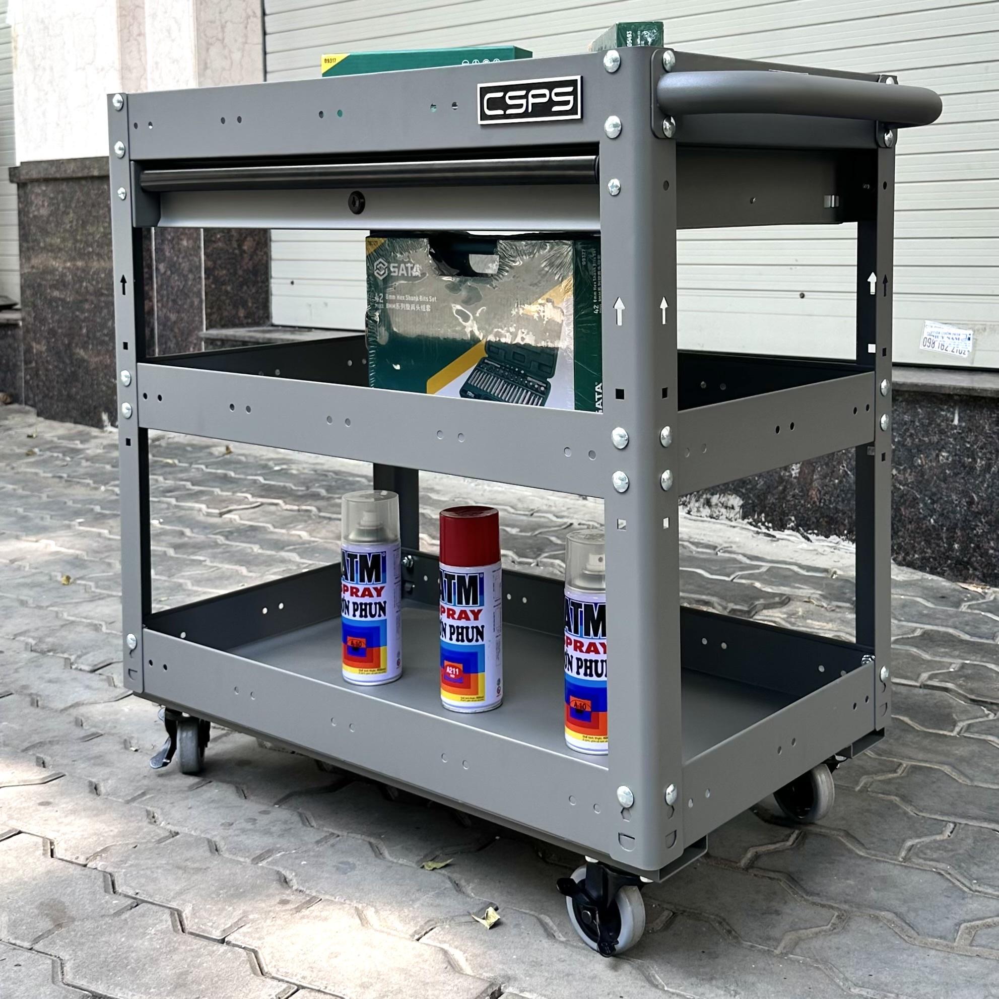 Xe đẩy CSPS 3 ngăn 71cm màu xám 01 hộc kéo