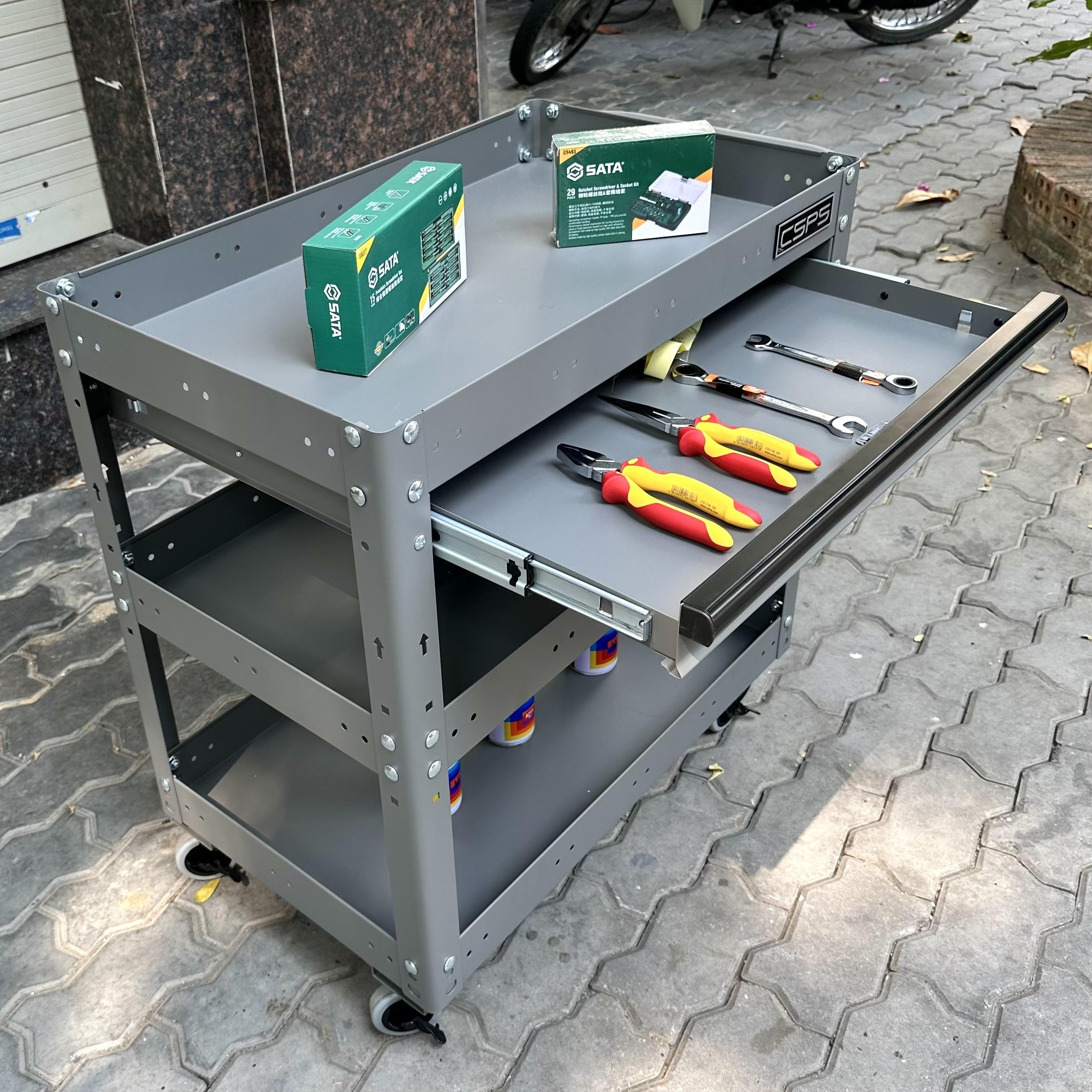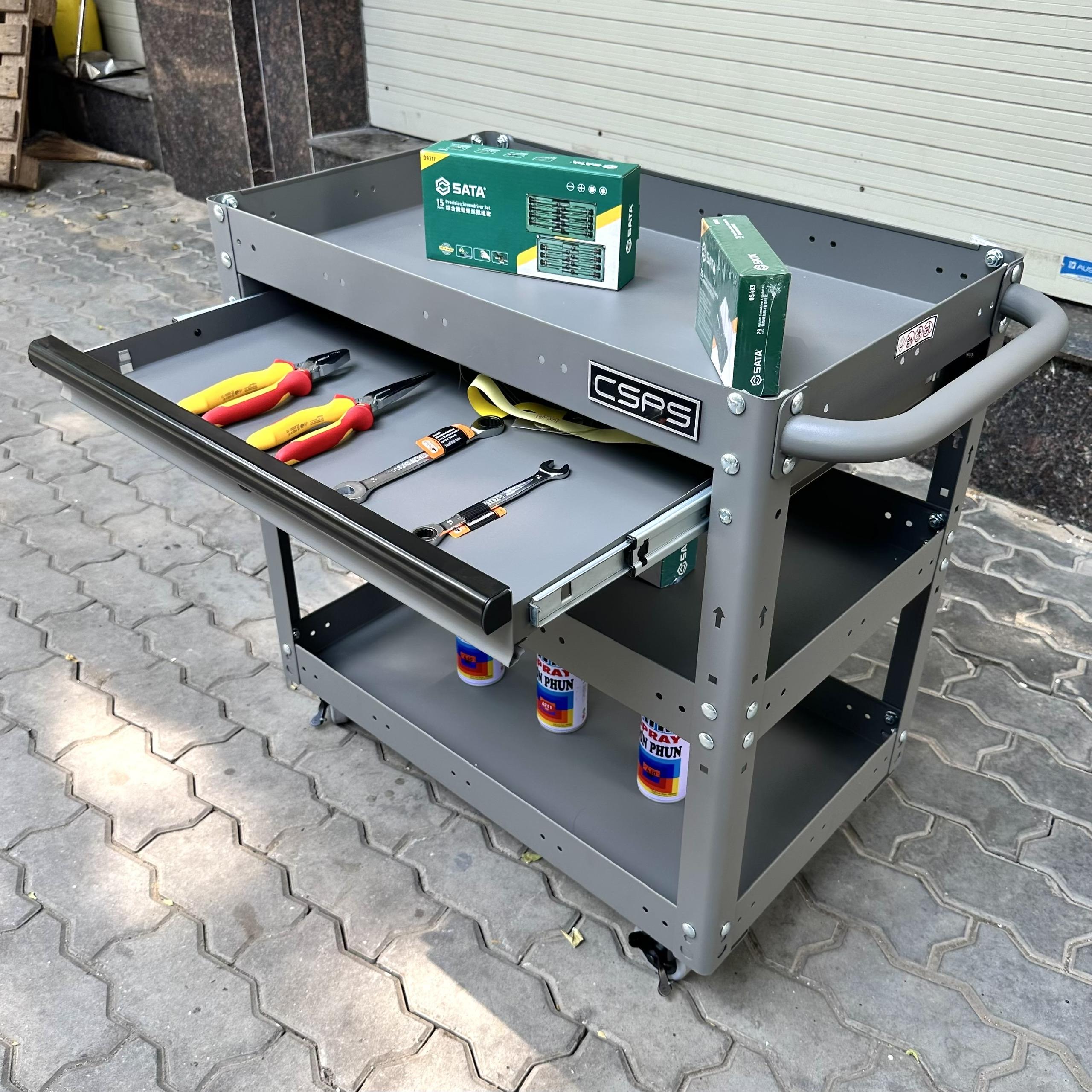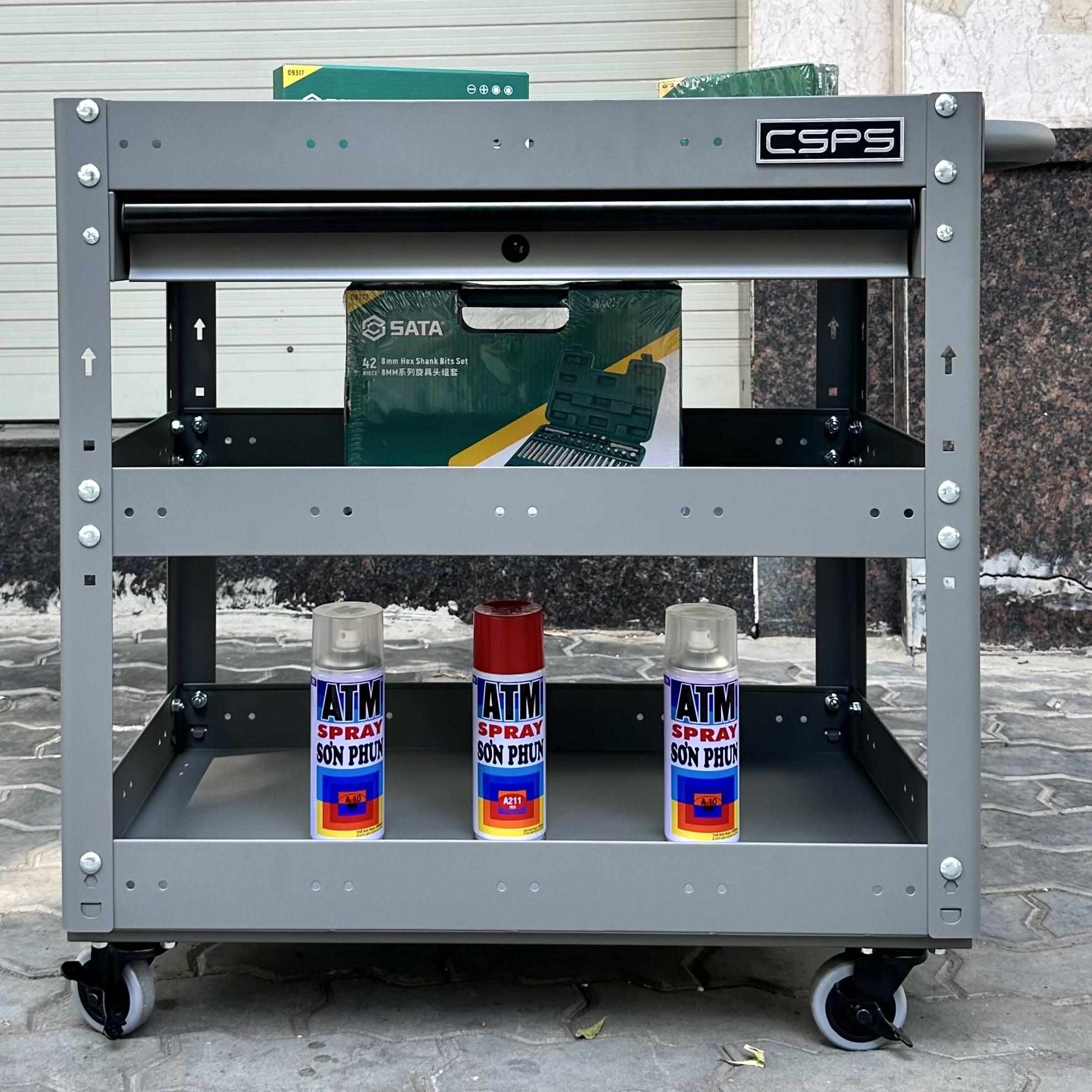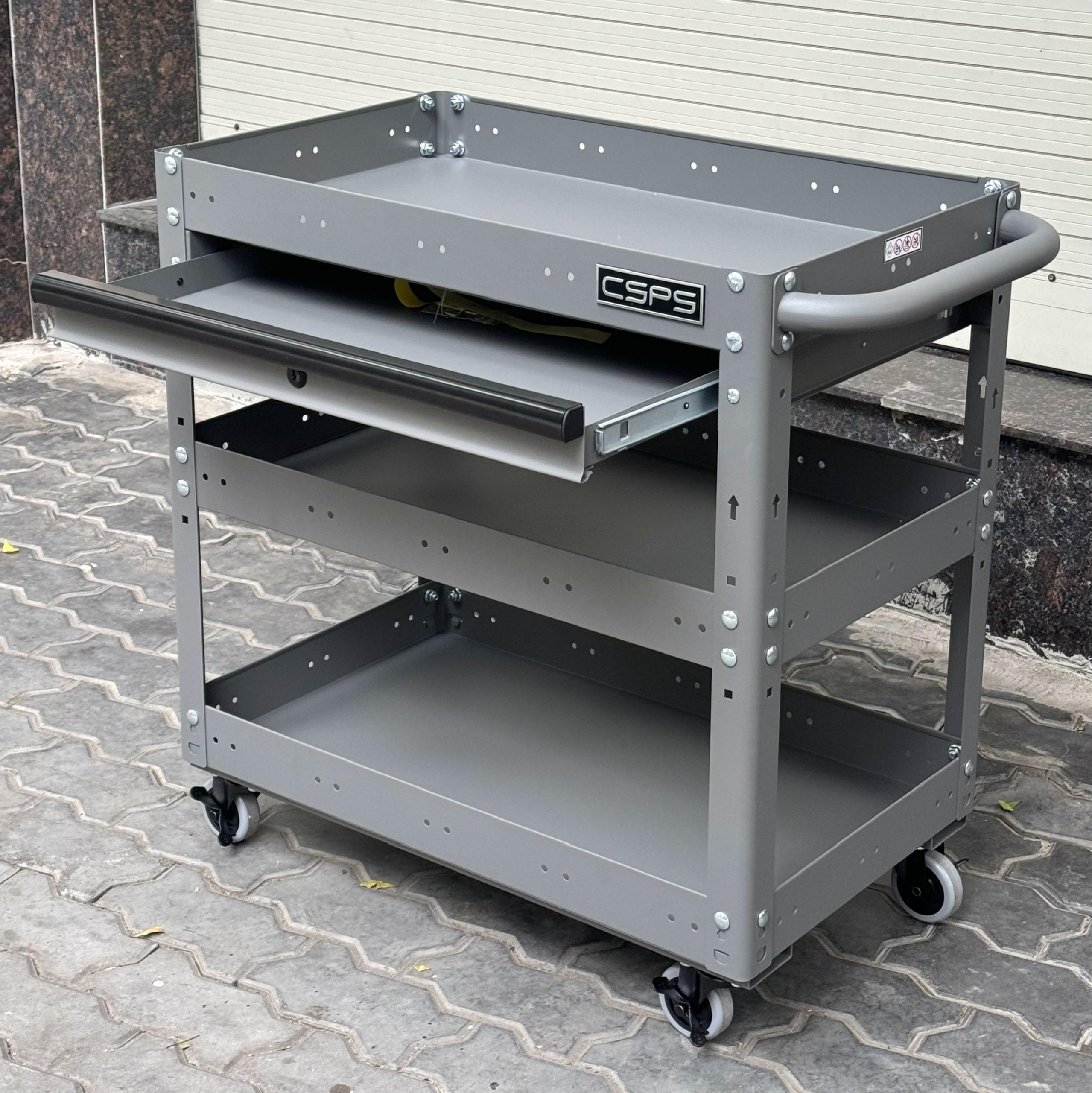 Xe đẩy CSPS 3 ngăn 71cm màu xám 01 hộc kéo